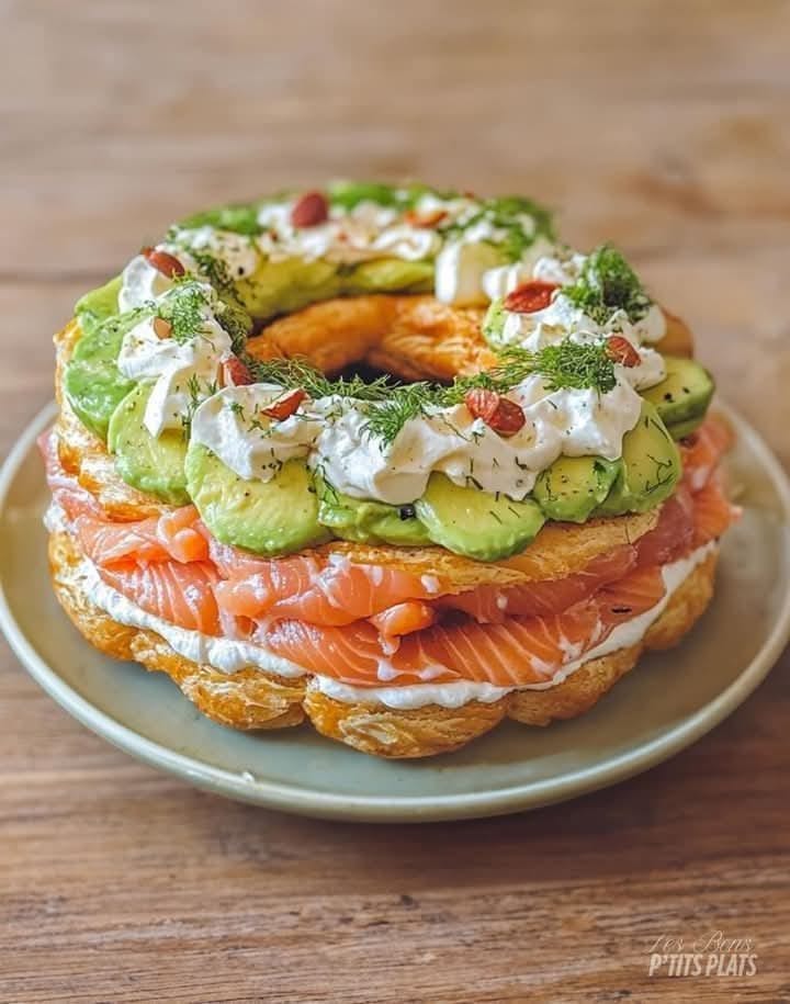 ### Fra Salted Paris-Brest with Salmon, Avocado Cream, and Fresh Cheese: A Modern Twist on a French Classic