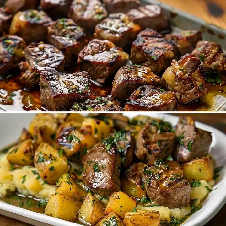 ## **Garlic Butter Steak Bites and Cheesy Smashed Potatoes: The Ultimate Comfort Duo**