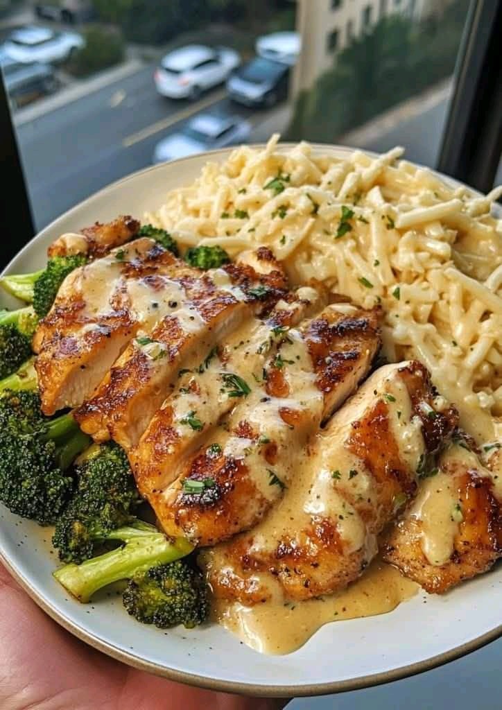 This dish masterfully blends the fiery kick of hot honey garlic chicken with the earthy, caramelized goodness of roasted broccoli. The real showstopper, however, is the rich and creamy Alfredo spaghetti — but with a twist: a unique fig-balsamic infusion that adds a deep, slightly sweet complexity you won’t find in traditional Alfredo recipes.